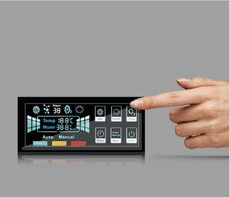 - Exhibición de trabajo del estado del volumen del aire, temperatura y humedad, control del LCD de pantalla táctil muestra el estado de la calidad del aire